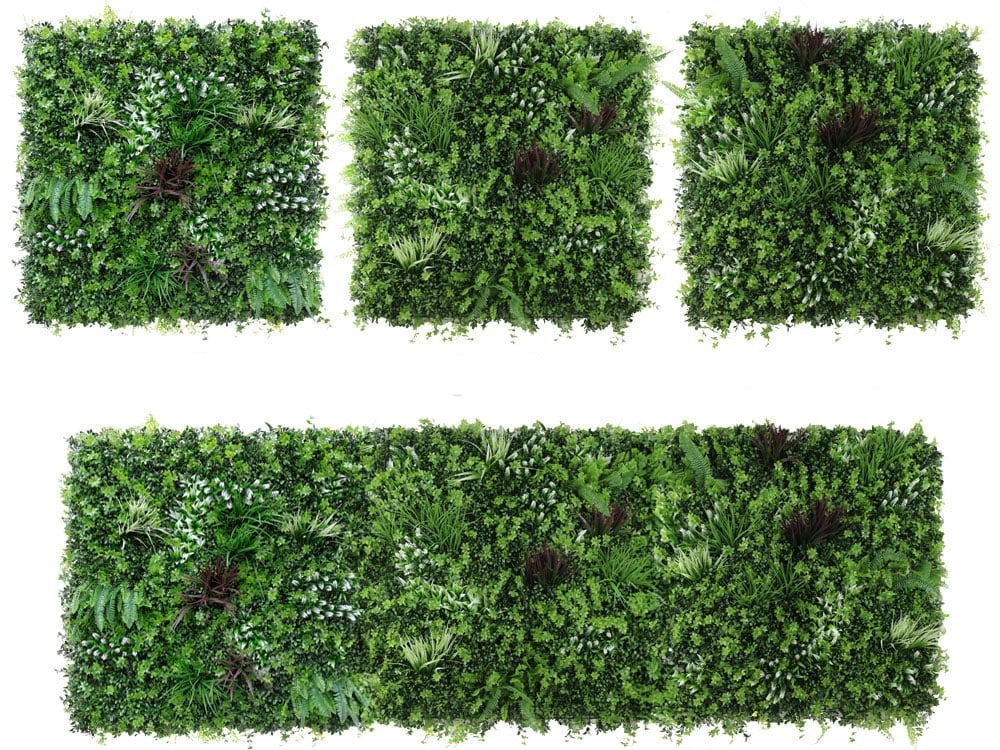 Az Everlush Premium műnövénypanel az egyik legdúsabb és legélethűbb megoldás a prémium kategóriában. A különböző levélformák, a mélyzöld, világoszöld és bordós árnyalatok kombinációja igazán természetes és elegáns látványt nyújt. Extra nagy, 1x1 méteres panelként ideális választás nagyobb falfelületek burkolására, modern zöldfalak létrehozására, akár beltéren, akár kültéren.