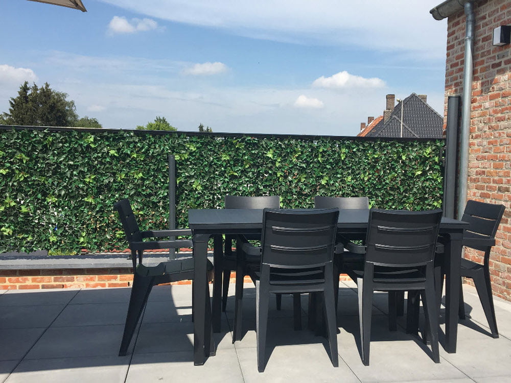 Prémium minőségű,dús műnövény panel, élethű borostyán levelekkel. A panel mérete 50×50 cm , könnyen összepattintható más elemekkel, így nagyobb felület is kialakítható belőle. Beltéri és kültéri használatra alkalmas, speciális UV védelemmel ellátva, időjárásálló és karbantartást nem igényel.