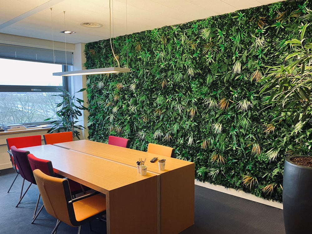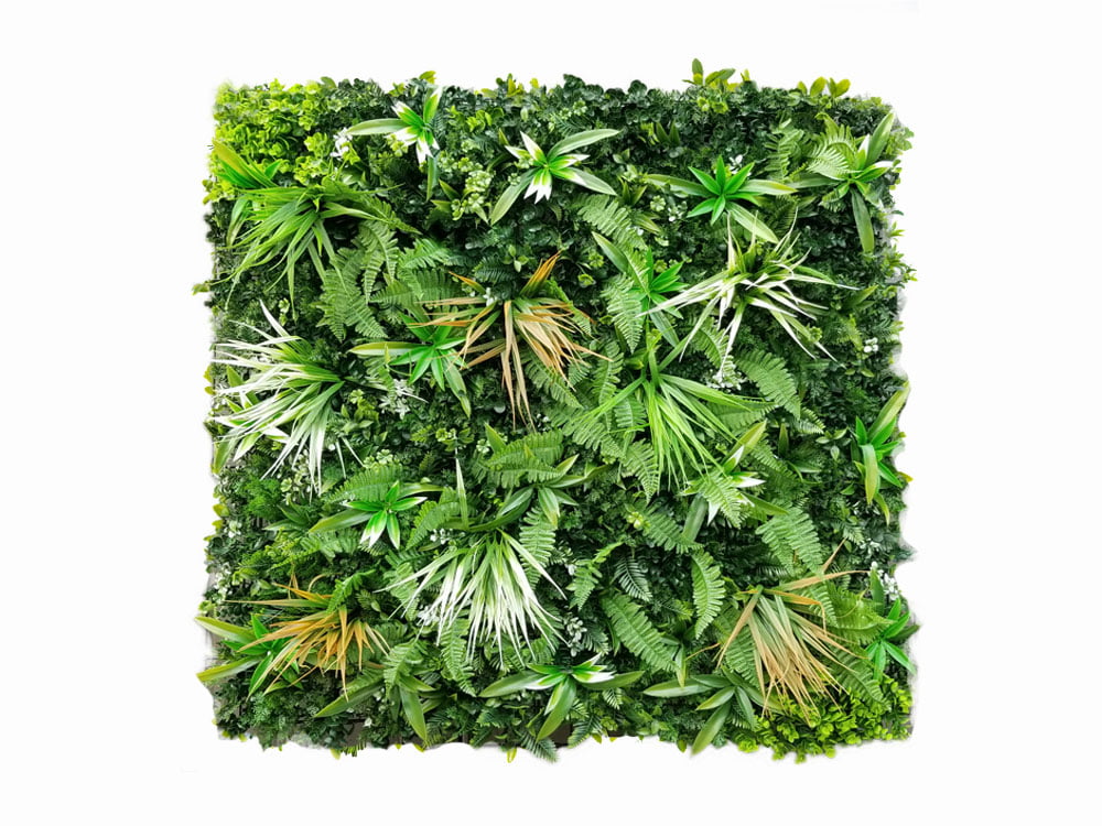 Az Urban Jungle Premium műnövénypanel modern, városi dzsungel hangulatot teremt, amely feldobja bármely belső vagy külső teret. Extra nagy, 1x1 méteres prémium méretének és a változatos, színes árnyalatokkal kombinált levélzetnek köszönhetően igazán különleges látványvilágot biztosít. A panelek különböző formájú leveleket, pálma- és páfrányelemeket tartalmaznak, amelyek együtt igazán természetes és dinamikus összhatást adnak.